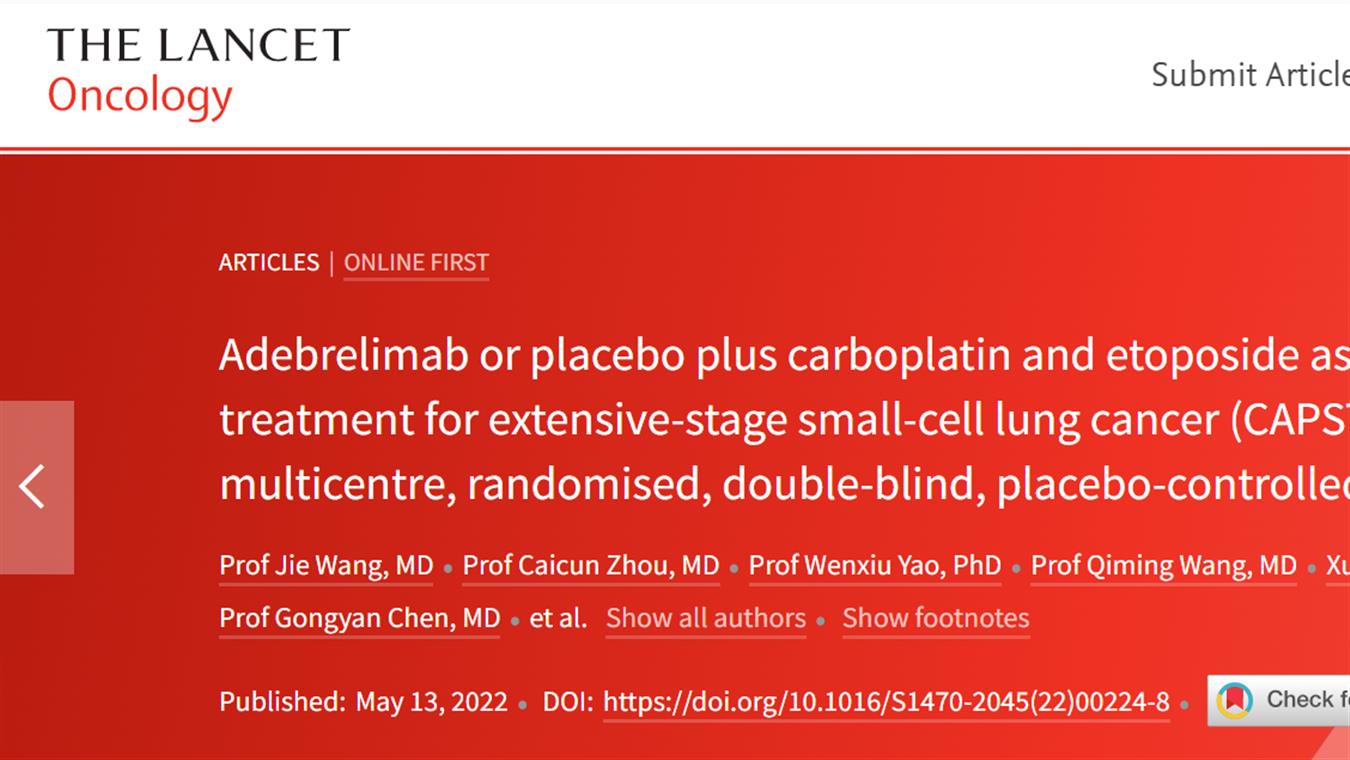 z6尊龙卡瑞利珠单抗联合阿帕替尼最新研究成果荣登《柳叶刀·肿瘤》